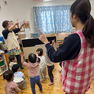 「音あそび」今月は0歳児から2歳児まで全員で楽しみました。